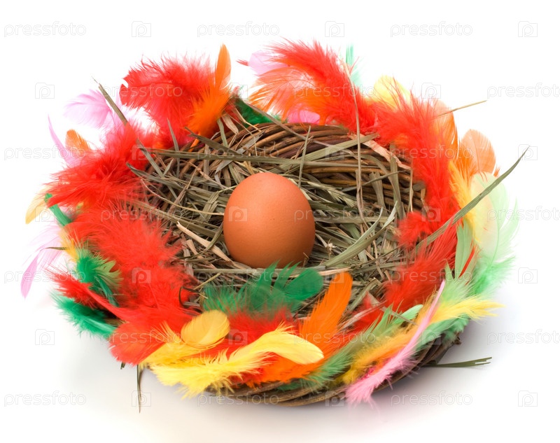 Пасхальное яйцо в гнезде, изолированное на белом фоне