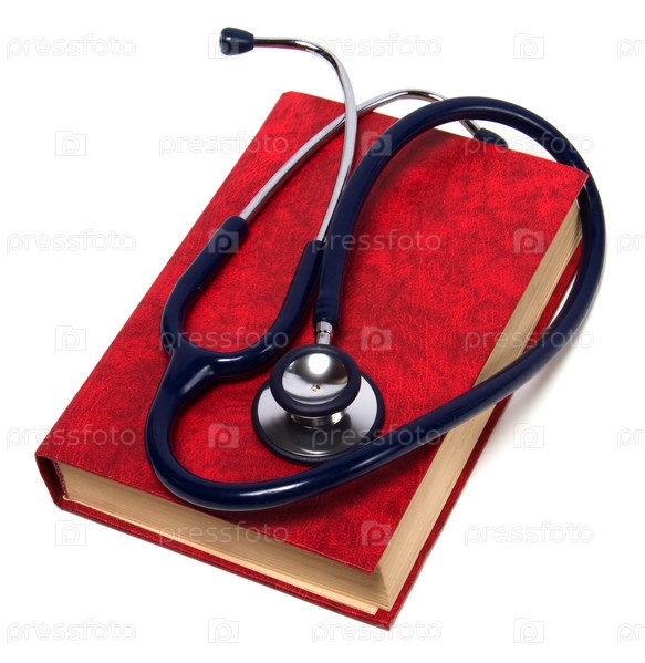 Стетоскоп на красной книге на белом фоне
