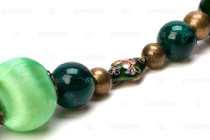 Зеленые бусы на белом фоне