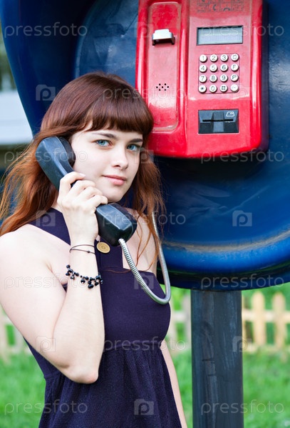 Молодая девушка возле телефонной будки