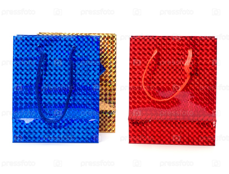 Блестящие подарочные пакеты на белом фоне