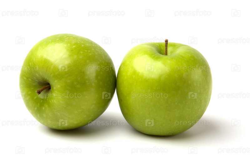 Зеленые яблоки на белом фоне
