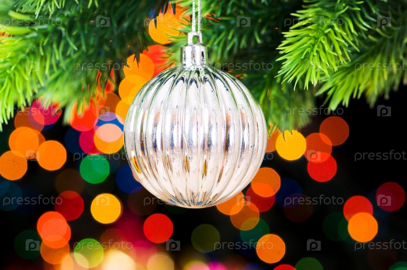 Новогоднее украшение и размытые огни на фоне