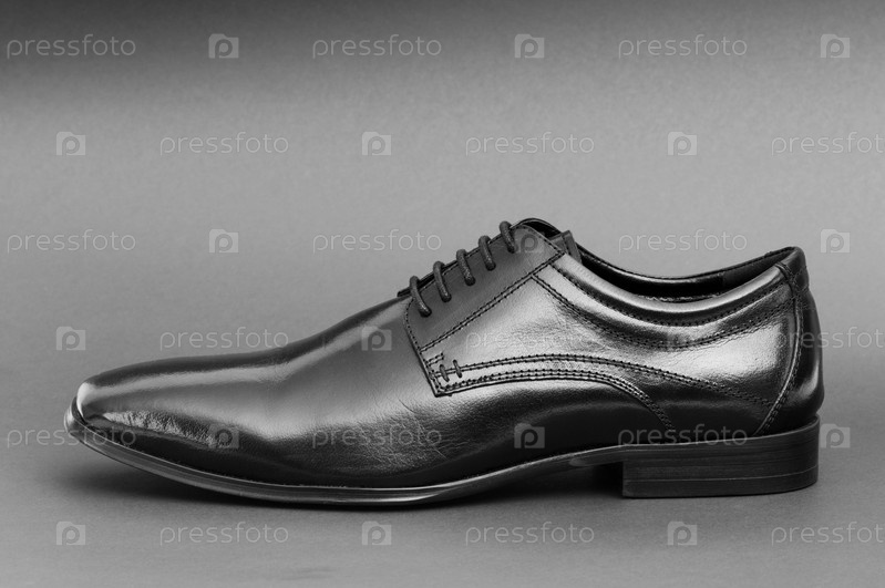 Мужской ботинок крупным планом. Изоляция на сером фоне