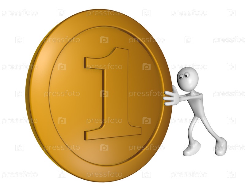 Монета и белый человечек на белом фоне - 3D иллюстрация