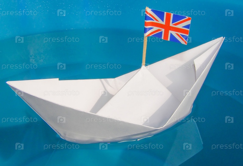 Бумажный кораблик с флагом Великобритании