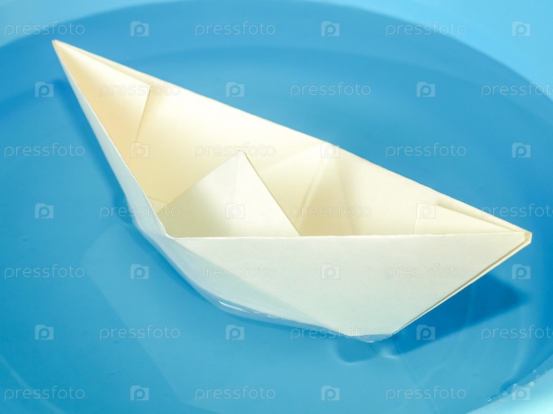 Бумажный кораблик на голубой воде