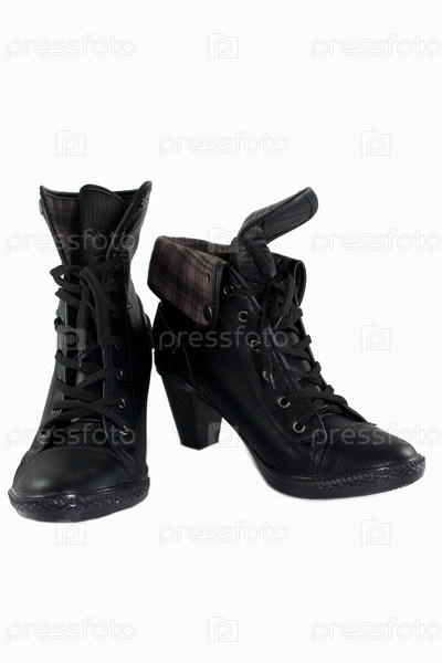 Черные женские ботинки на белом фоне