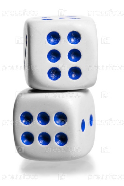 Две белые кости стоят друг на друге на белом фоне