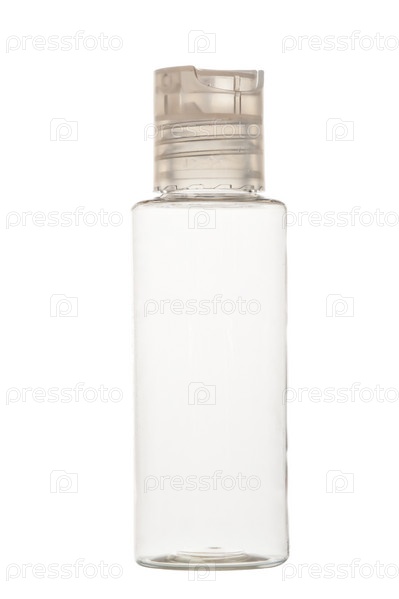Пустая прозрачная пластиковая бутылка для косметики на белом фоне