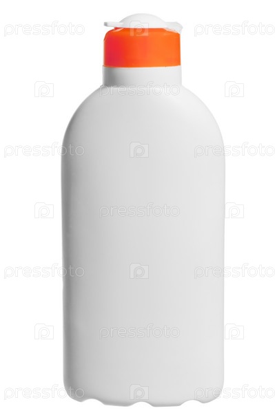 Белая косметическая бутылка на белом фоне