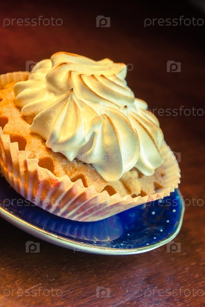 Кекс на синей тарелке