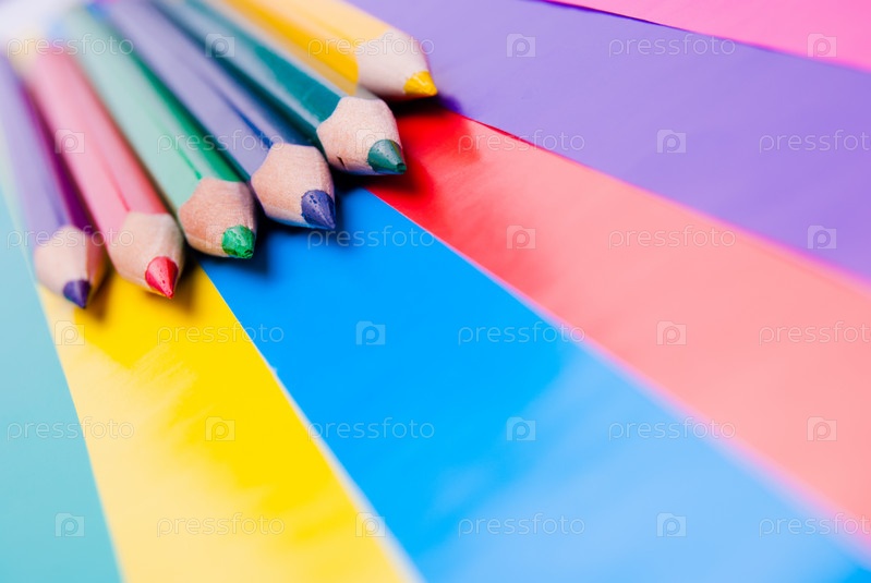 Яркие карандаши на цветной бумаге