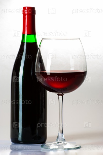 Винная бутылка и бокал, наполненный вином, изолированные на белом