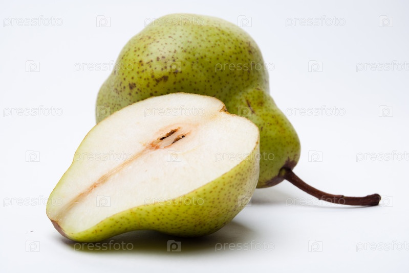 Груша с ломтиком, изолированная на белом