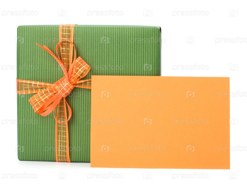 Пасхальный подарок с поздравительной открыткой, изолировано на белом фоне