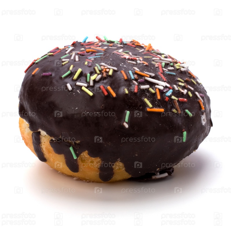 Пончик с шоколадным кремом, изолированный на белом фоне