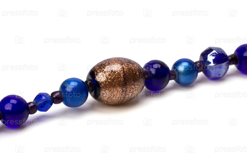 Синие бусы, изолированные на белом фоне
