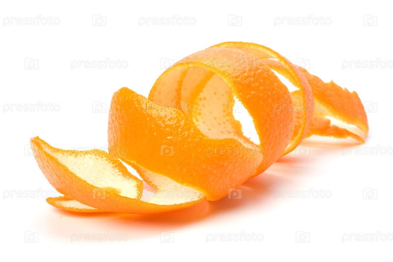 Спираль из апельсиновой цедры, изолированная на белом