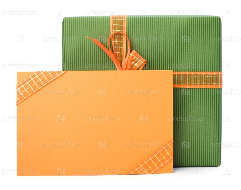 Пасхальный подарок с поздравительной открыткой, изолированные на белом