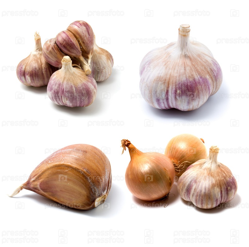 Чеснок и лук, изолированные на белом