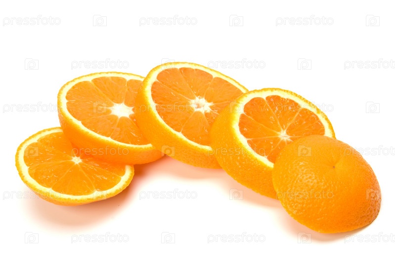 Апельсиновые дольки, изолированные на белом фоне