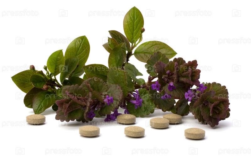 Травяные таблетки, изолированные на белом фоне