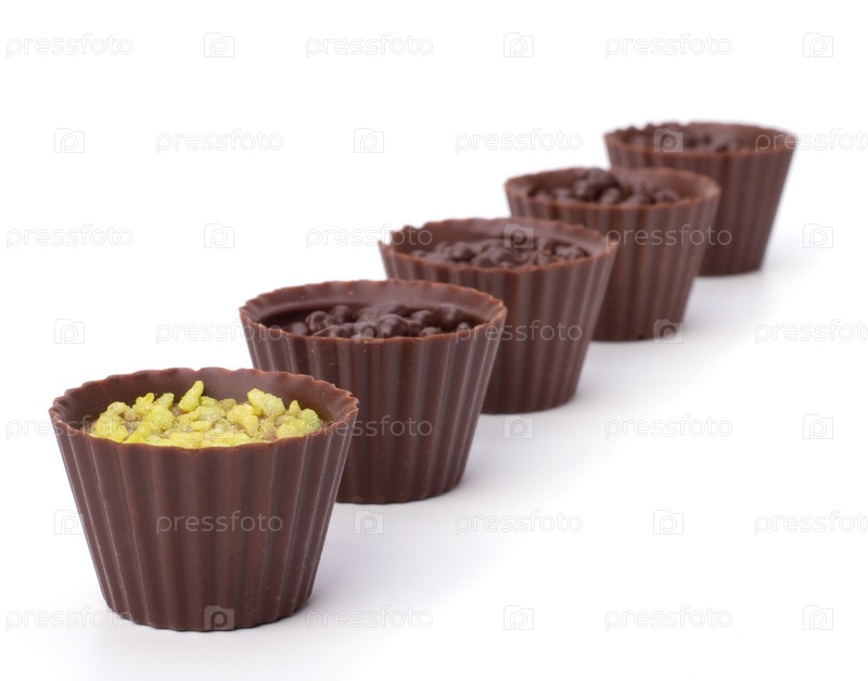 Шоколадные конфеты, изолированные на белом фоне