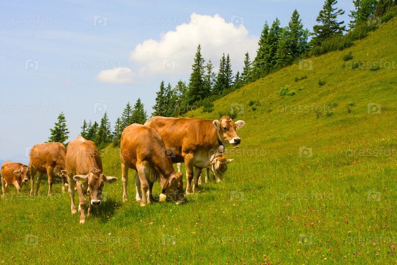 Стадо коров, пасущихся в Альпах