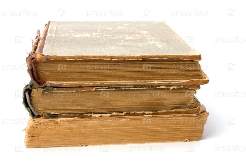 Стопка потрепанных книг на белом фоне
