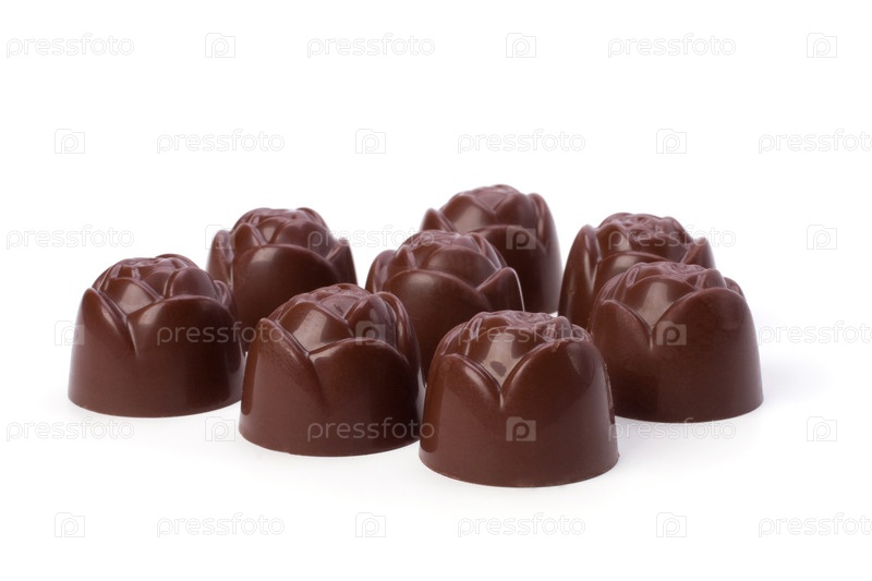 Шоколадные конфеты на белом фоне