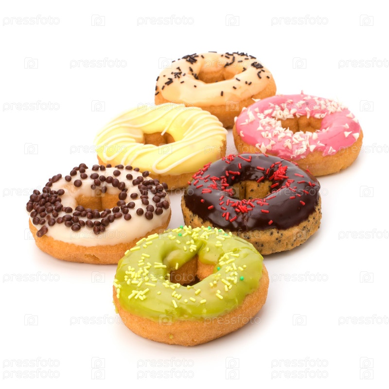 Вкусные пончики на белом фоне