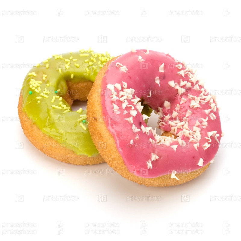 Вкусные пончики на белом фоне