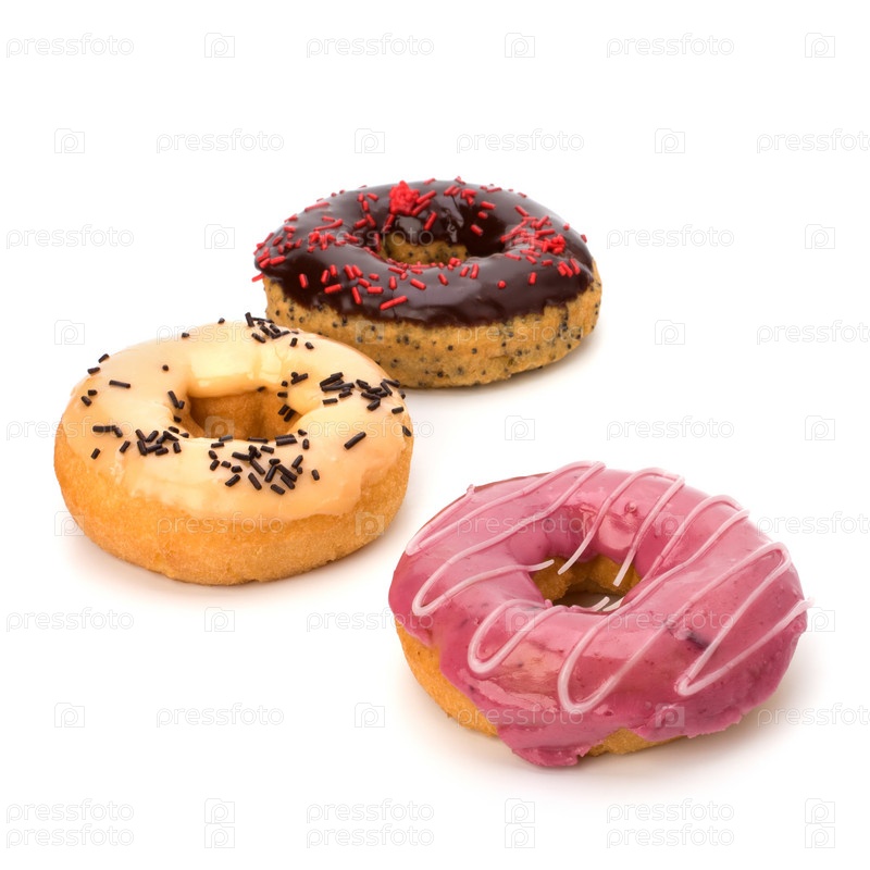 Вкусные пончики на белом фоне