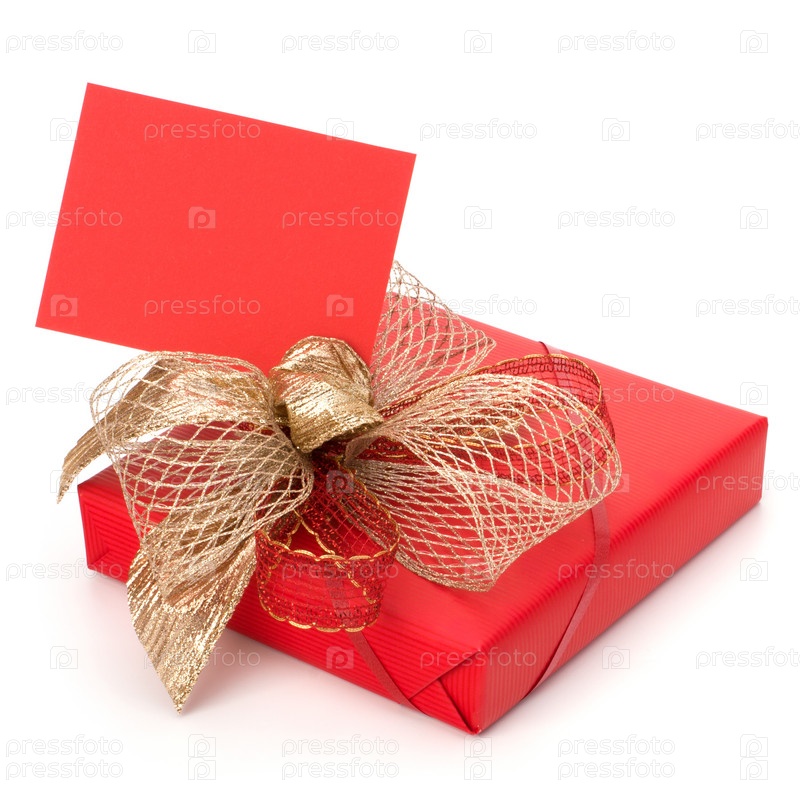Роскошный подарок с открыткой на белом фоне