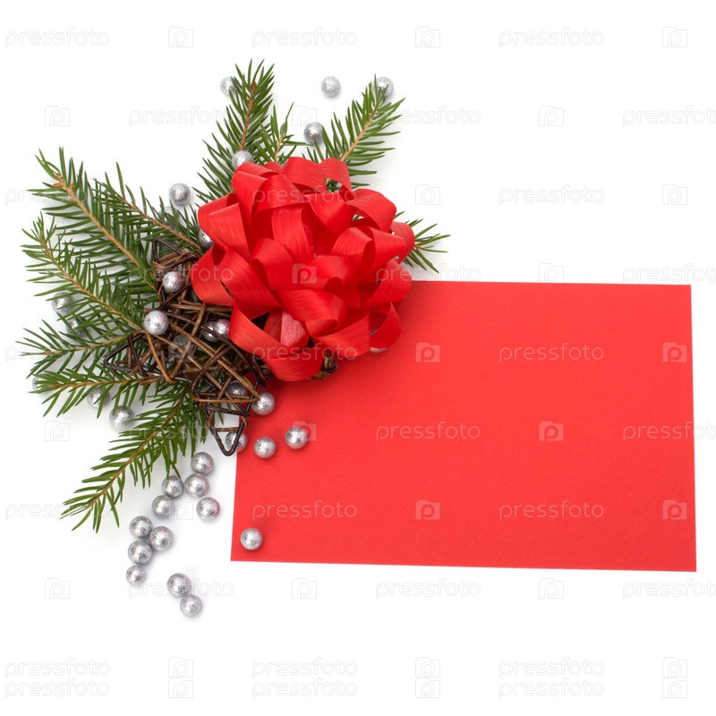 Рождественские украшения с поздравительной открыткой, изолированные на белом фоне