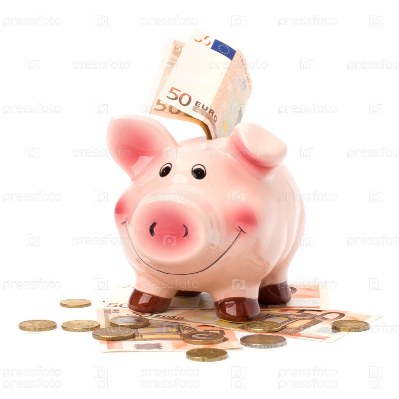 Бизнес-концепция. Счастливая копилка в виде свинки на белом фоне