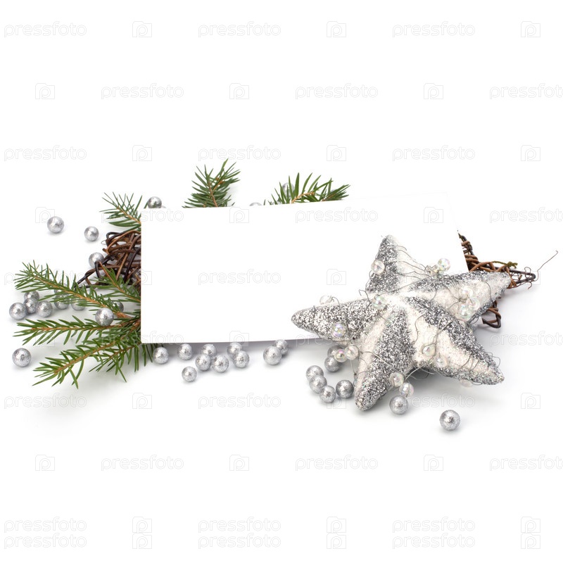 Рождественские украшения с открыткой на белом фоне