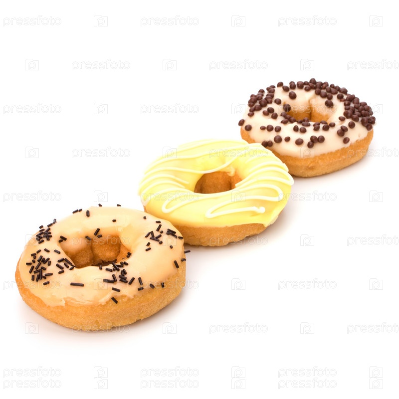 Вкусные пончики на белом фоне
