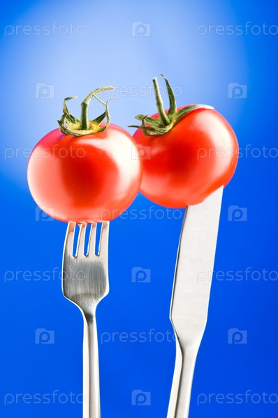 Два помидора и нож с вилкой