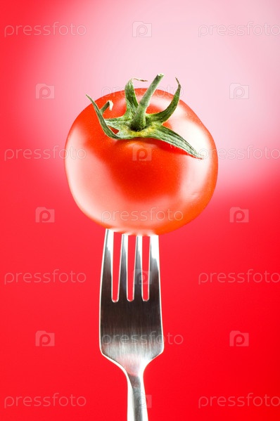 Помидор, наколотый на вилку