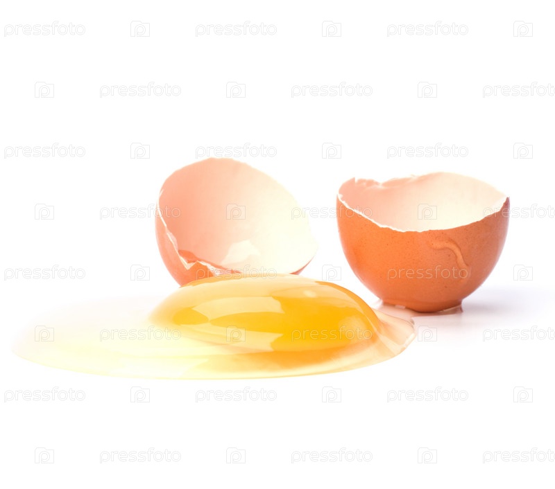 Разбитое яйцо на белом фоне