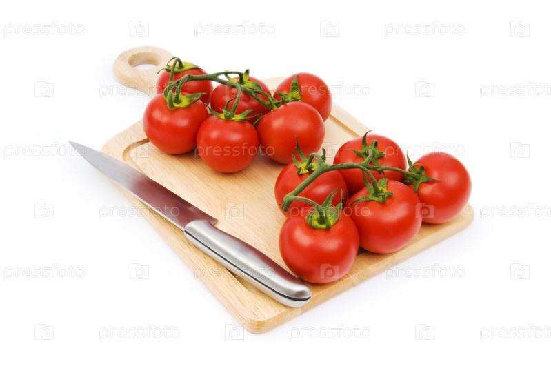 Спелые помидоры на разделочной доске с ножом