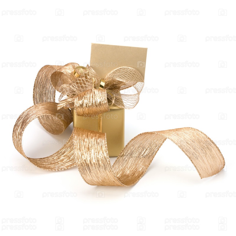 Роскошный подарок с открыткой на белом фоне