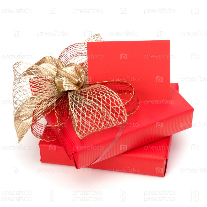 Роскошные подарки с запиской, изолированные на белом фоне