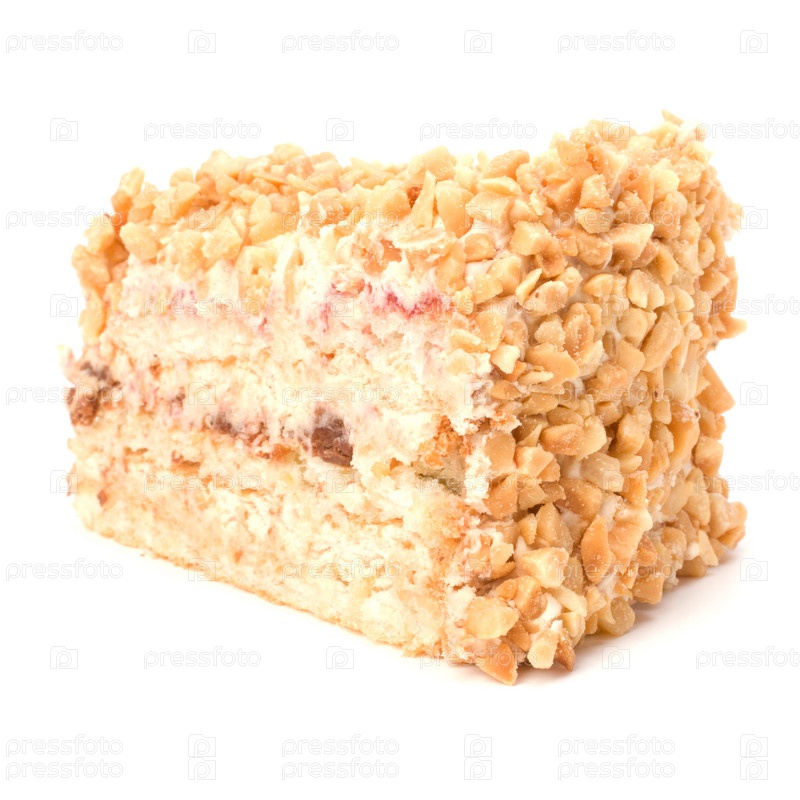 Кусочек торта с кремом, изолированный на белом фоне