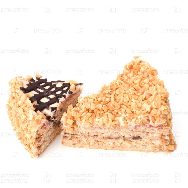 Кусок торта с кремом, изолированный на белом фоне