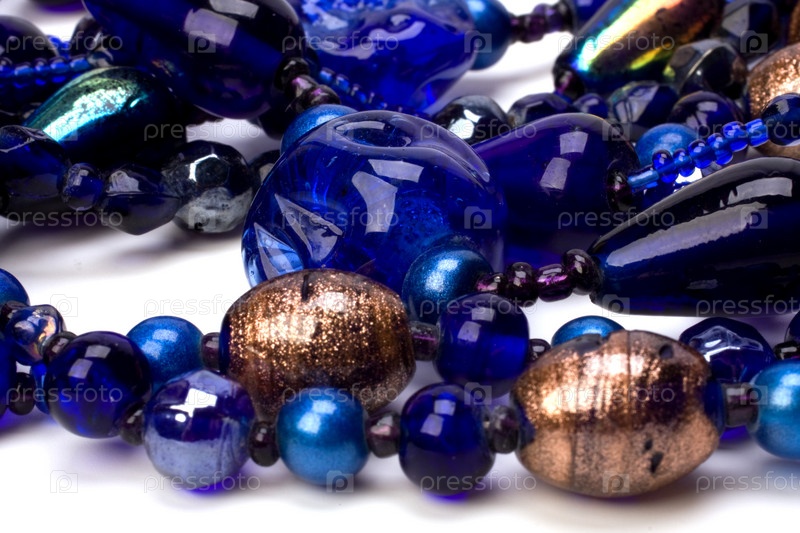 Синие бусы, изолированные на белом фоне