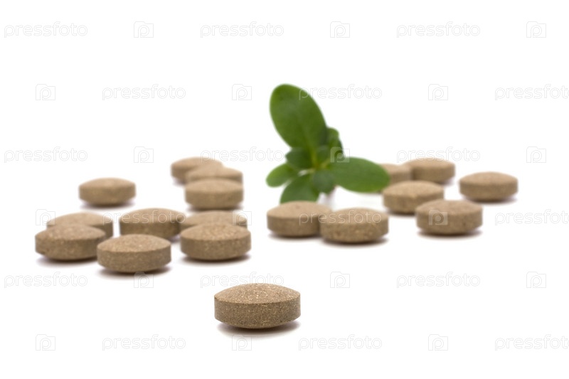 Травяные таблетки, изолированные на белом фоне