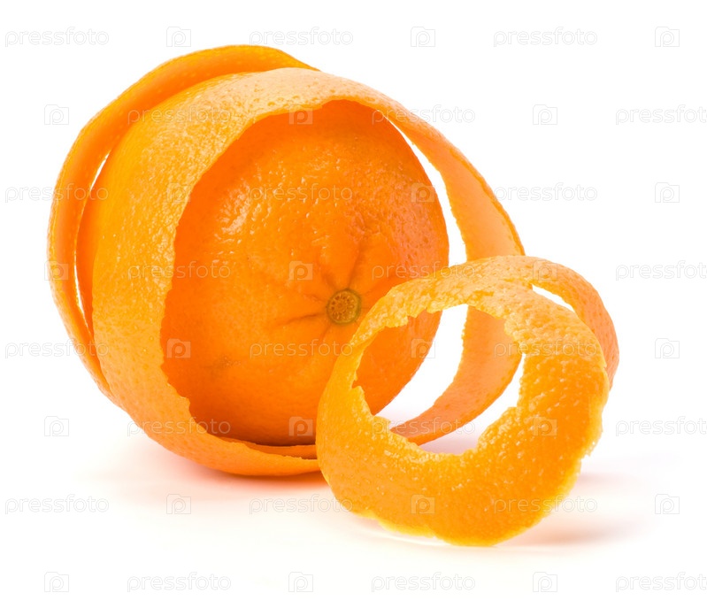 Апельсин с двумя слоями кожуры, изолированный на белом фоне. Концепция защиты и безопасности